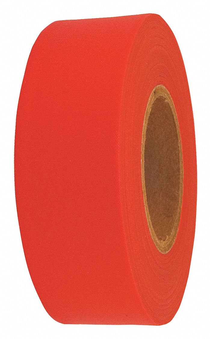 GRAINGER APPROVED Flagging Tape, Fluorescent Red, 1 3/16 in x 300 ft, Blank 1EC231EC23 Grainger
